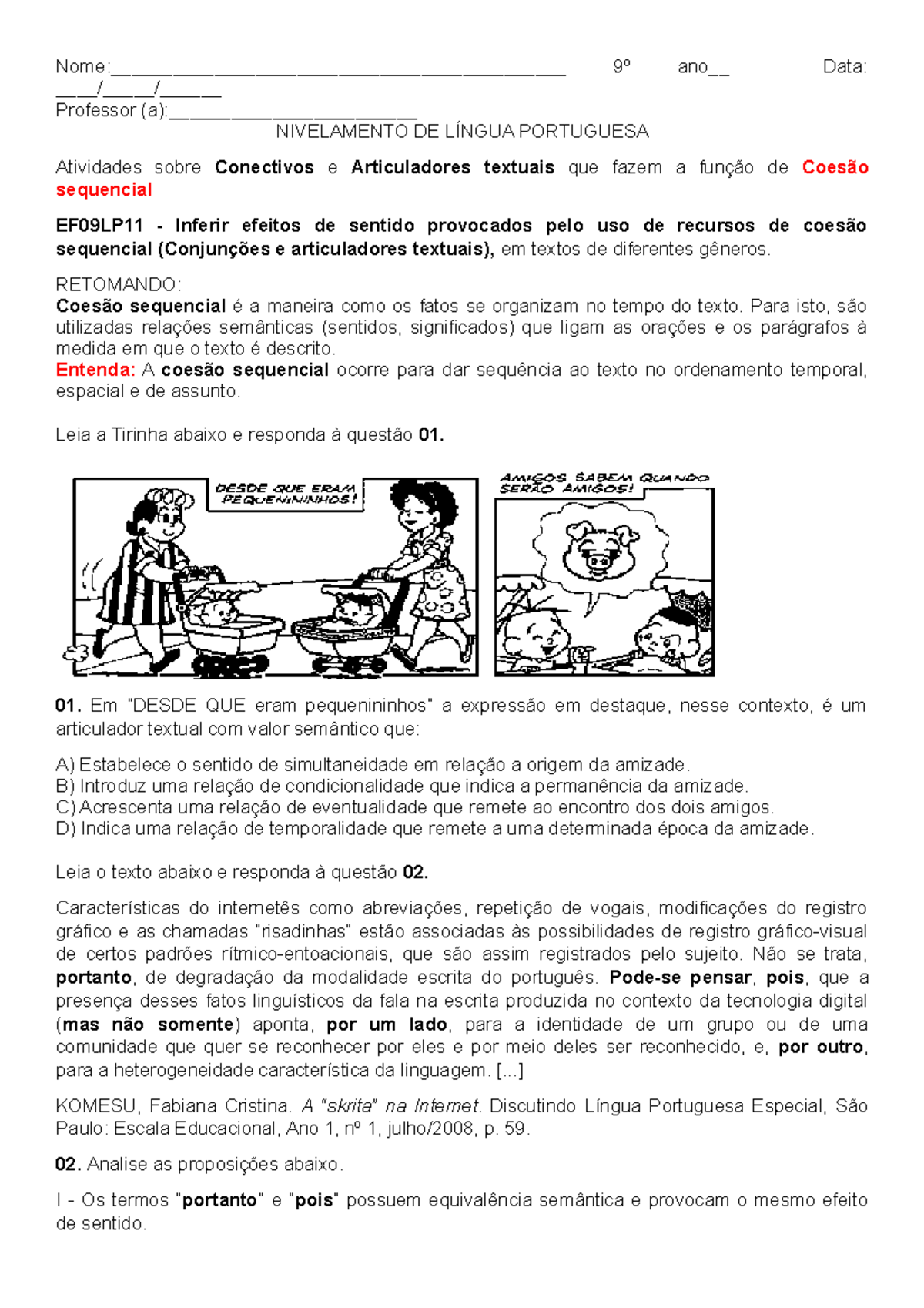 Atividades De Coesão E Coerência Ensino Médio Com Gabarito