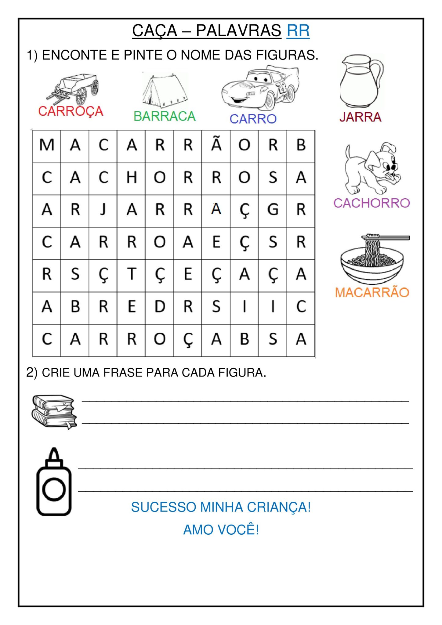 * caça al palavra, que consiste em encontrar palavras escritas na folha que possuem determinado som.