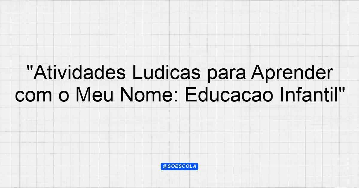 Atividades Lúdicas Com O Nome Educação Infantil Objetivo