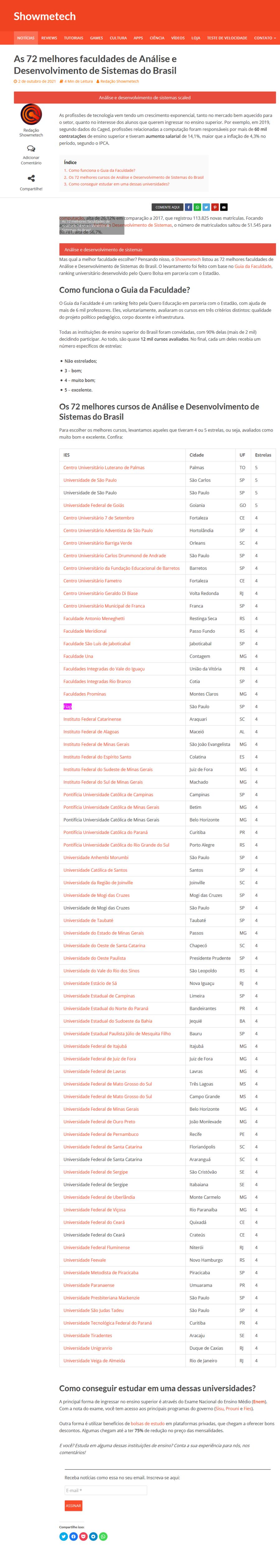 50 melhores faculdades de Análise e Desenvolvimento de Sistemas do