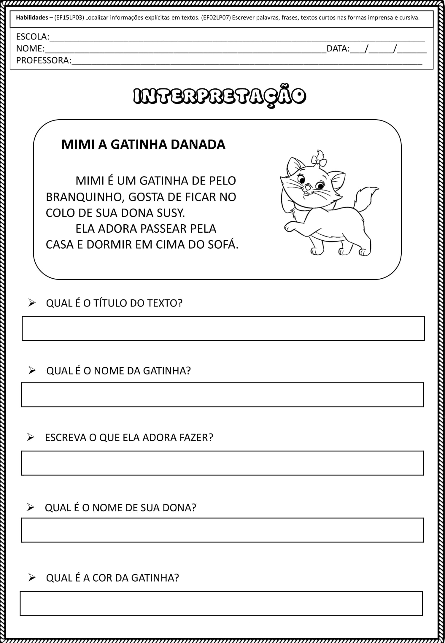 Pequenos Textos Para Alfabetização Com Interpretação 1 Ano